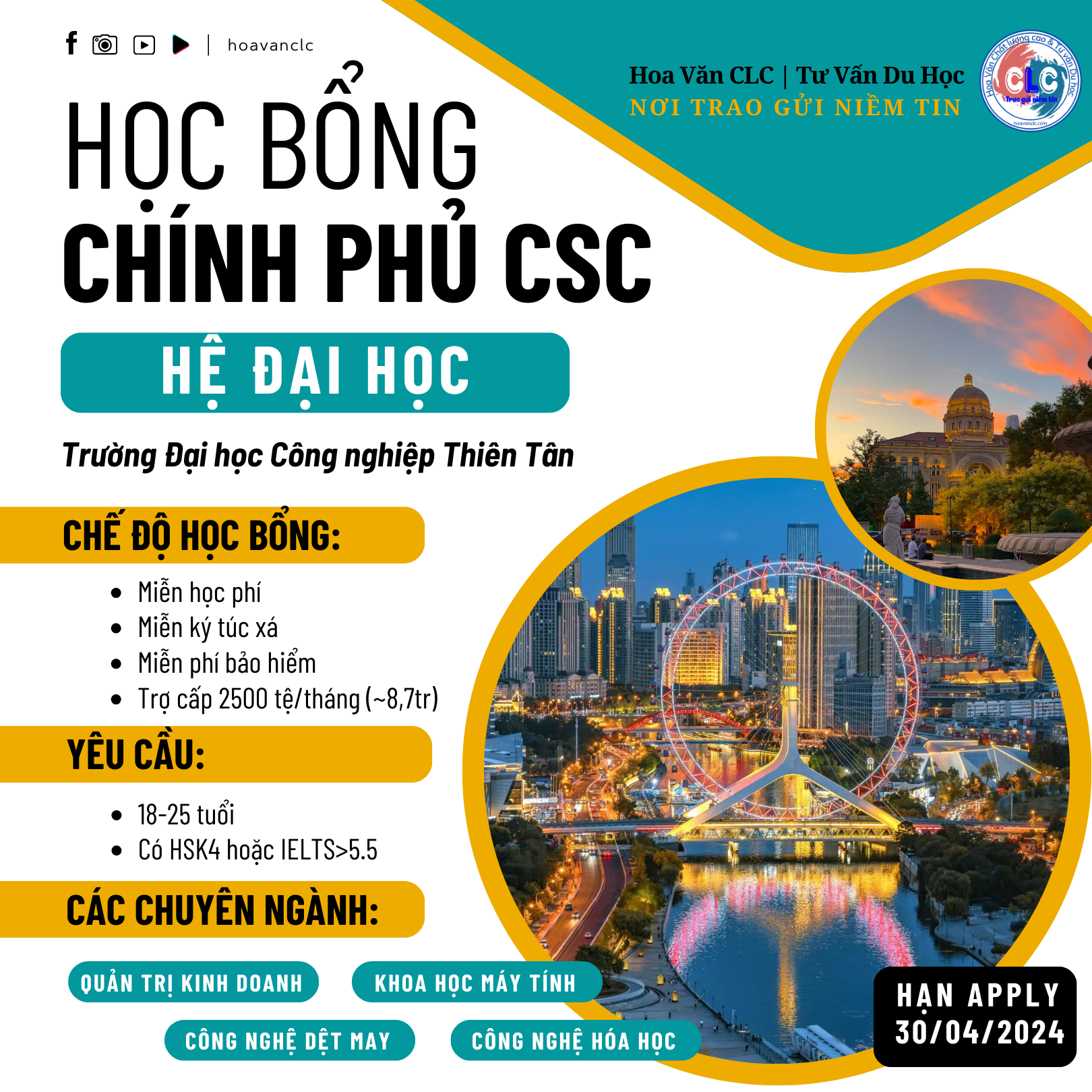 Công ty TNHH Giáo dục và Tư vấn Du học Chất Lượng Cao (gọi tắt là Du học CLC) ra đời từ năm 2019, với sự tâm huyết đội ngũ giáo viên tiếng Hoa nhiều năm kinh nghiệm cùng với đội ngũ chuyên viên tư vấn giỏi trong lĩnh vực du học Trung Quốc, Đài Loan.