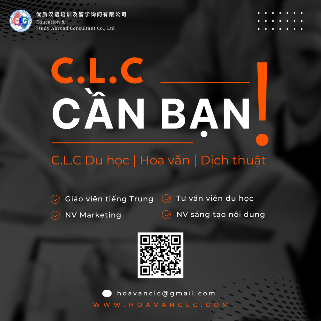 Năm học mới sắp khởi động, ngôi nhà chung – Hoa Văn CLC cần những bạn trẻ năng động, sáng tạo, nhiệt huyết đóng góp cho sự phát triển chung của CLC trong lĩnh vực đào tạo ngôn ngữ; tư vấn du học Trung Quốc, Đài Loan.