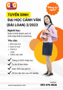 Thời gian nhập học: Tháng 2/2023 Ngành học: Quản trị kinh doanh quốc tế Xuất ...