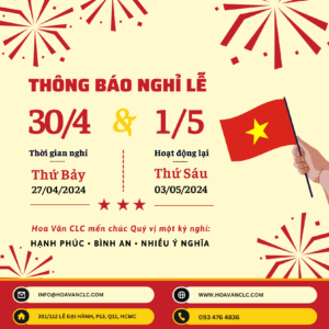 Hoa Văn CLC xin thông báo đến Quý vị Lịch nghỉ lễ như sau: Ngày ...