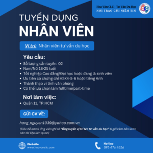 Hoa Văn CLC cần tuyển dụng 02 nhân viên tư vấn du học. Cụ thể ...