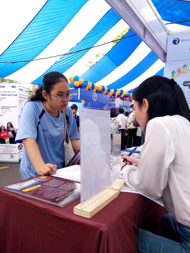 Hồi tưởng cá nhân một xíu, không ngờ gần 20 năm trước, bản thân mình cũng từng háo hức, bỡ ngỡ tham gia những ngày hội tuyển sinh như thế này dưới vai trò một học sinh 12. Vậy mà giờ đây, lại tham gia với vai trò tư vấn – định hướng tương lai cho các em. Liệu rằng có điều tuyệt diệu và ngọt ngào nào hơn với sự biến chuyến của dòng chảy thời gian này?