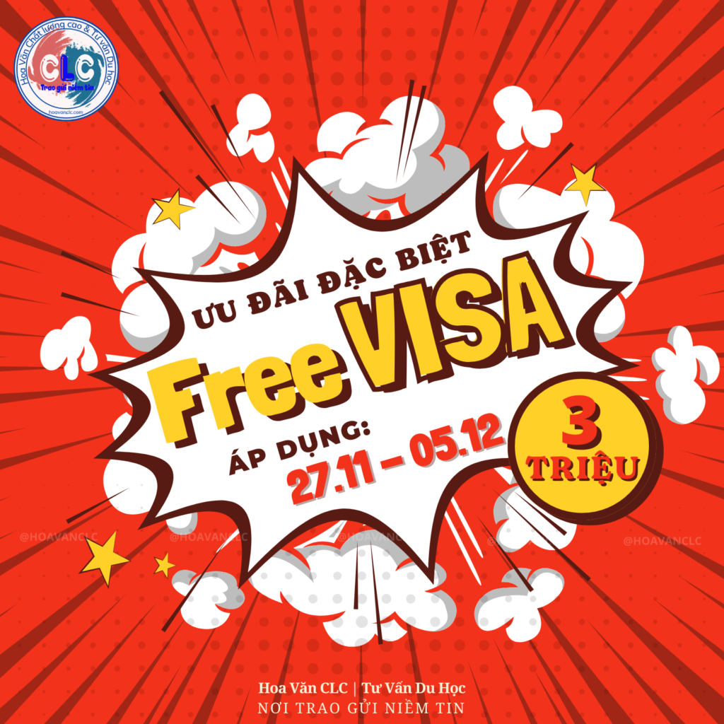 Nhằm tri ân cho các bạn du học sinh chọn CLC đồng hành làm hồ sơ du học đi Trung – Đài, CLC áp dụng tặng phí làm visa trị giá 3.000.000đ cho hồ sơ du học hệ/ngành/trường bất kỳ, nhập học tháng 2+3/2024.
