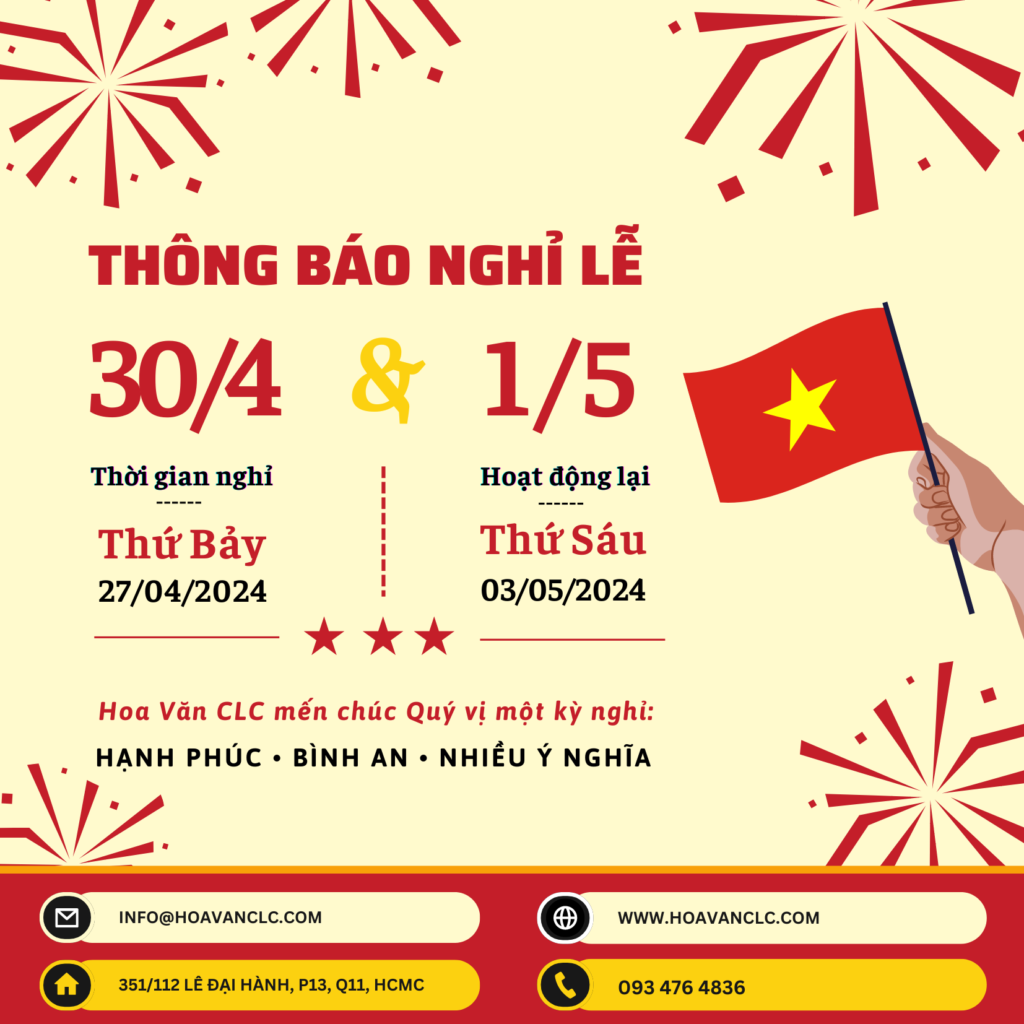 Hoa Văn CLC xin thông báo đến Quý vị Lịch nghỉ lễ như sau: