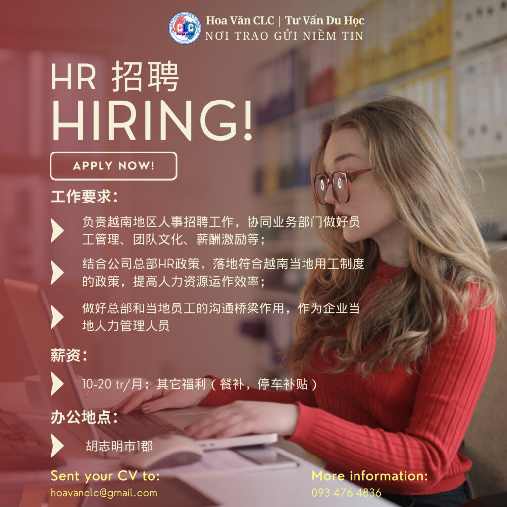 Vị trí công việc: HRĐịa điểm làm việc: Quận 1, TP.HCMHạn nộp hồ sơ: tháng 12/2023Chi tiết công việc: (mô tả bên dưới)