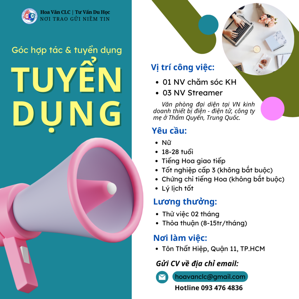 Chi tiết công việc xin vui lòng xem trong ảnhHoa Văn CLC phỏng vấn hồ sơ đạt yêu cầu và chuyển tiếp cho Cty tuyển dụngHạn nộp hồ sơ: cuối tháng 12/2023